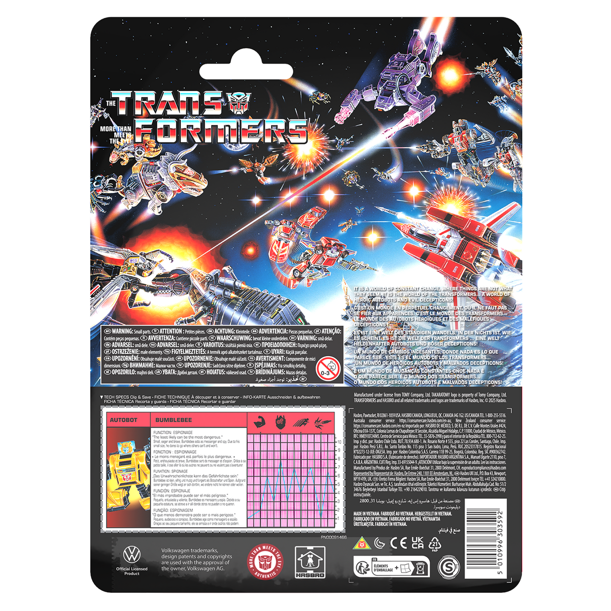 Re-experience the nostalgia of your favorite G1 action figures with the Transformers Retro Autobot Bumblebee toy! This vintage G1 Autobot Bumblebee toy is inspired by retro G1 packaging. Small, eager and brave, Bumblebee acts as messenger and spy. Due to his small size, he dares to go where others can't and won't. Transformers Retro G1 action figures feature vintage styling, accessories, and exclusive package art and tech specs. Clip out and save the on-box tech specs to share, then see how this figure stacks up against other heroic Autobots and evil Decepticons. Each sold separately, subject to availability.